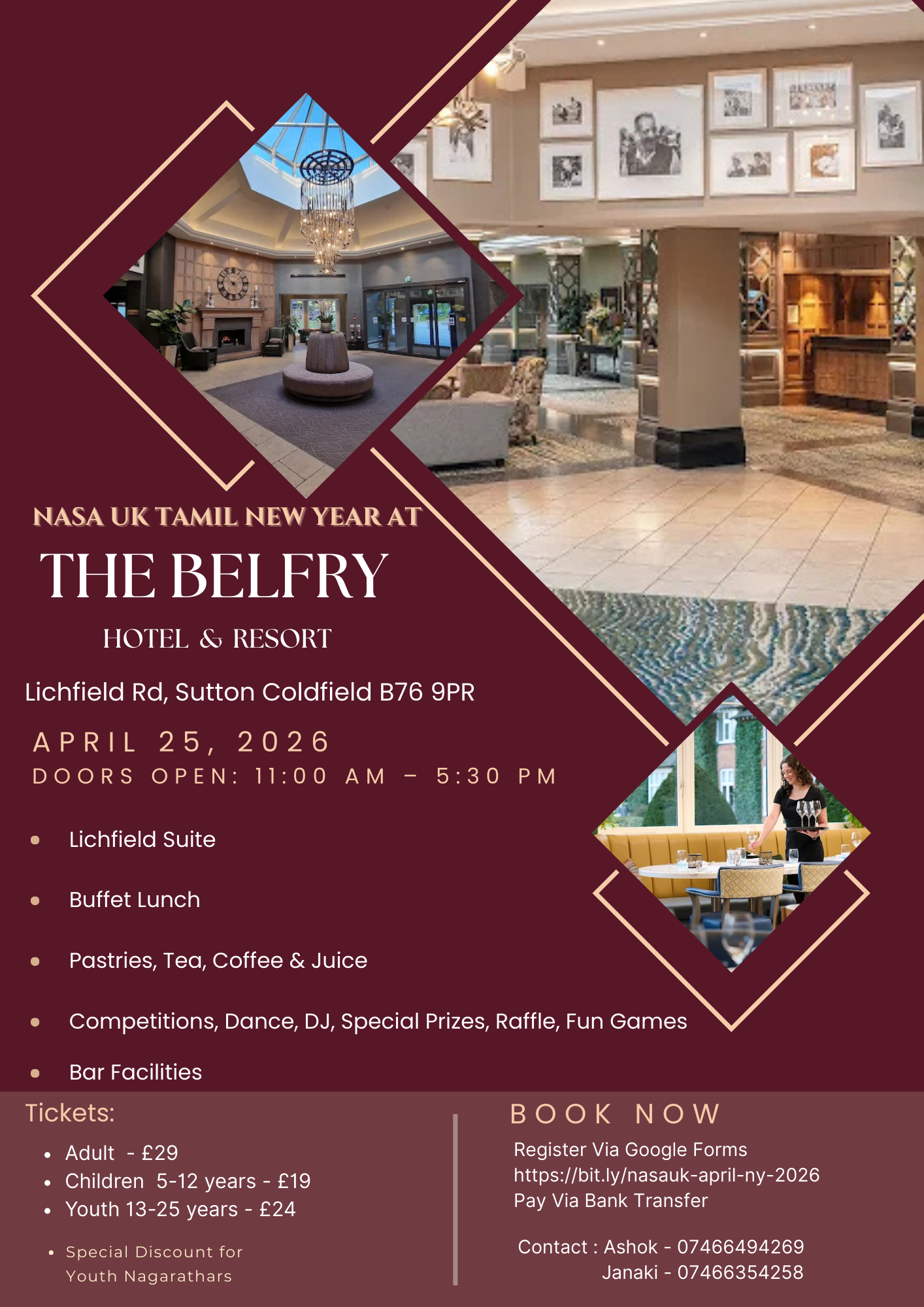 NaSa UK members came together to celebrate Tamil New Year 2025 on 26th and 27th April at the scenic Last Drop Village Hotel & Spa, Bolton, Greater Manchester. The two-day event was a vibrant showcase of Tamil culture, tradition, and togetherness. We were delighted to welcome about 100 attendees to the NaSa UK Tamil New 2025 celebration!🎉✨